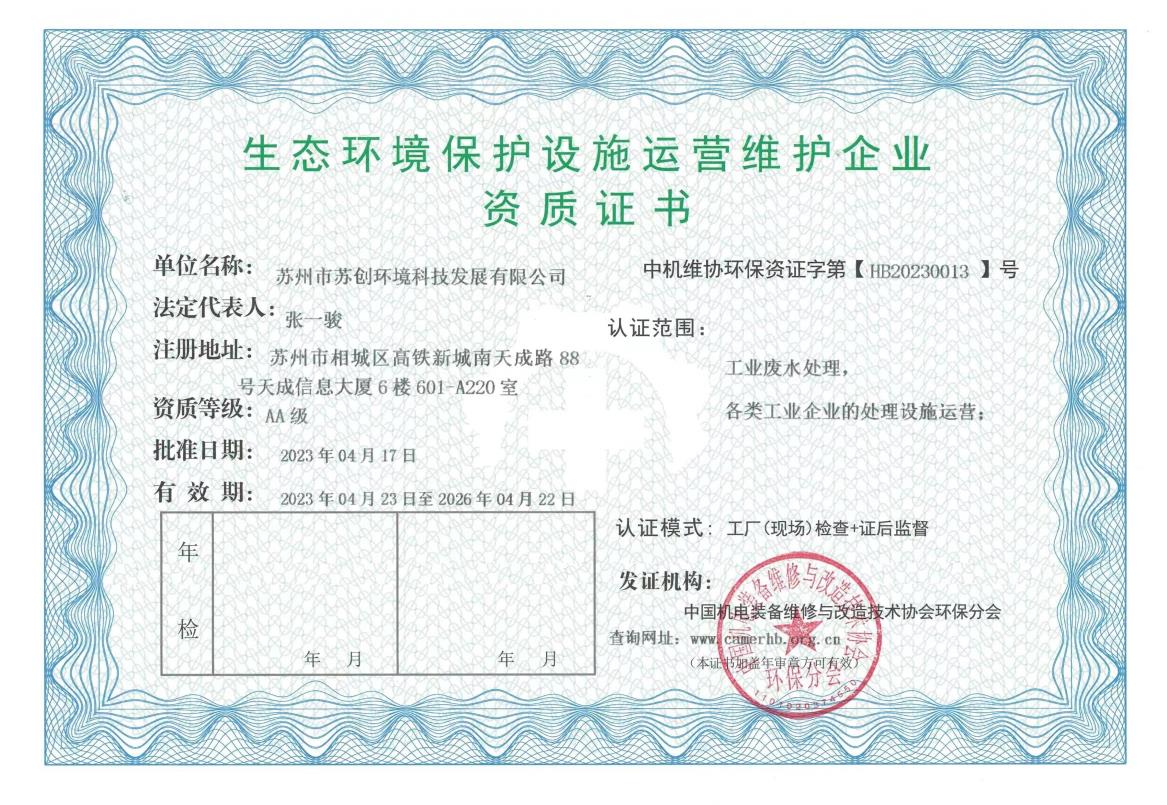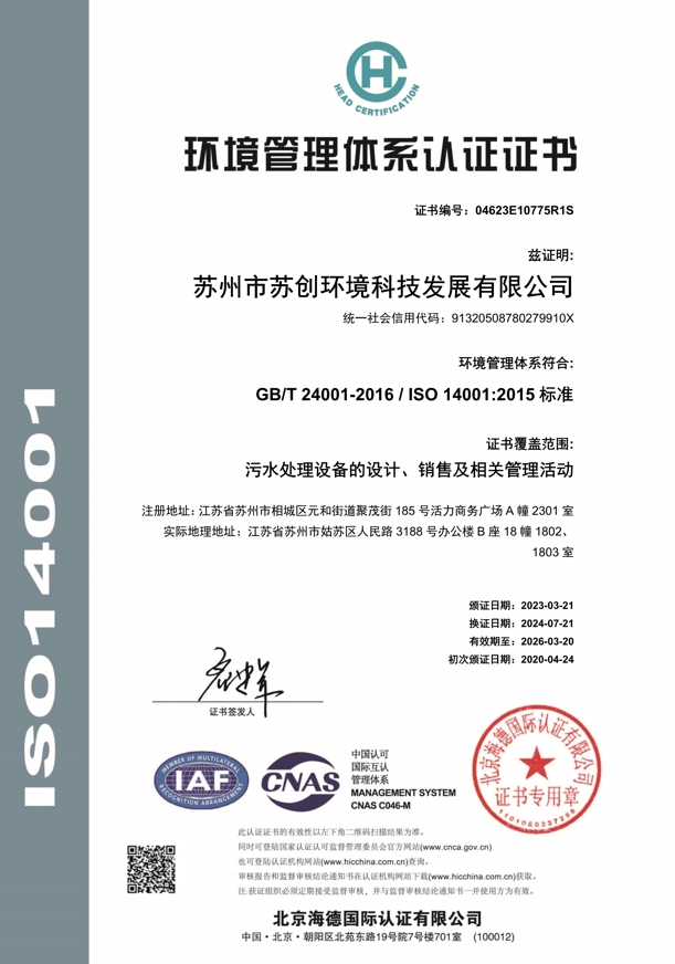 創新技術,用心服務蘇州市蘇創環境科技發展有限公司